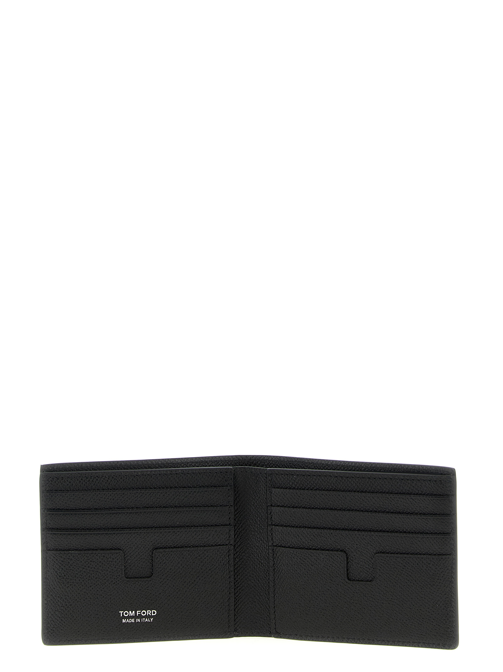 Bifold wallet in small-grain leather with silver metallic front logo.