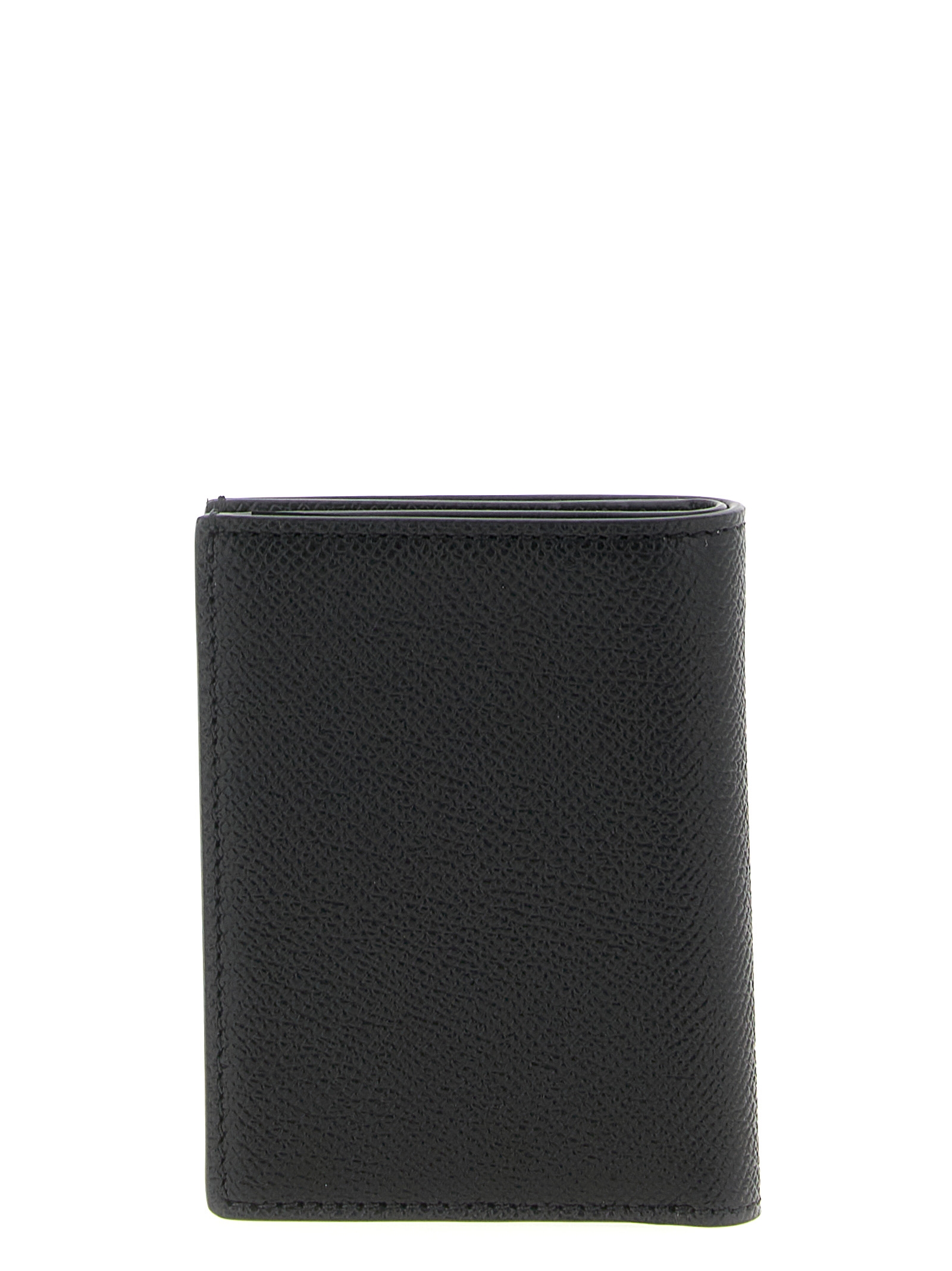 Складной держатель для карт из мелкозернистой кожи с серебристым металлическим логотипом на передней части.Характеристики товара