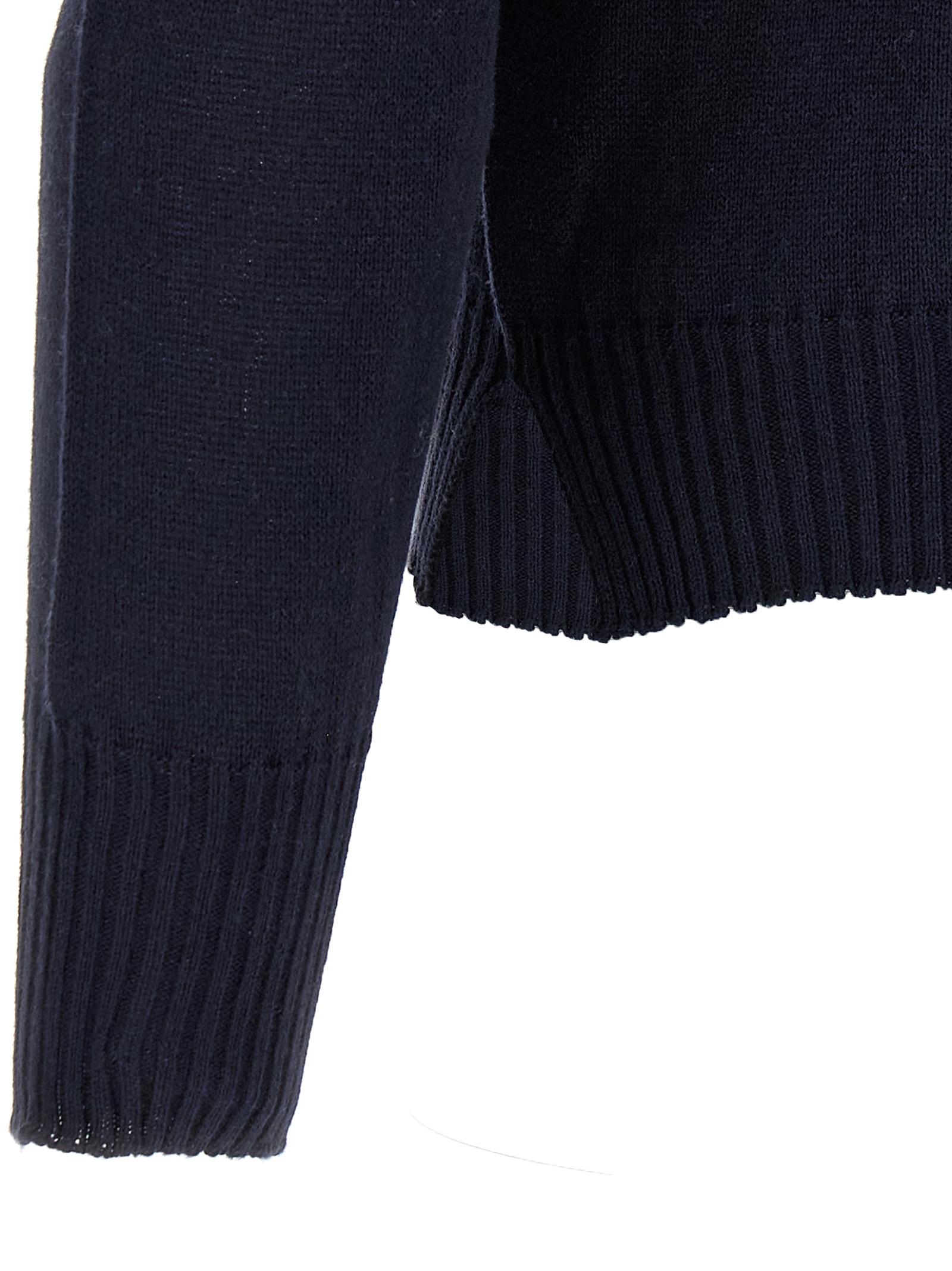 Cotton and cashmere blend sweater, crew neck, long cuffed sleeves and side splits.